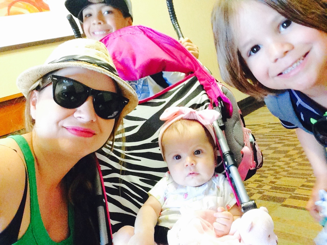 The next day, Tuesday, around 5 pm I started to notice our AC wasn’t cooling. The baby woke up crying and sweating from her nap. You guessed right again, our AC wasn’t working. My husband got someone out to check it out, they said it had a leak and we needed to replace “something” (I’m a girl, this obviously didn’t matter to me, I just wanted it fixed!) It would be until Friday before it would get fixed. What?! We just got home! So that night we slept in the house. Windows open, it wasn’t too bad except I woke up with a sore throat. Boo. But as Wednesday got hotter and hotter we knew we had to get out. It was unbearable! My husband looked around for an inexpensive hotel, nearby in case I needed to go home to pick anything up. So we headed to our local Hyatt. Well, my husband went to work. I headed there with the four kids. Thankfully the room was large, they had a pathetic play pen set up for the baby but it worked after making it more comfortable for her. It was a long 2 days! Good news came when the AC guy said they could come Thursday and they fixed it. Woohoo! We got home late but I was so glad to just be home, in my bed. I had a horrible time with the hot pool weather and the cold hotel rooms. I hardly slept. I don’t remember the last time I did my hair, or my makeup and wore something cute. It was survival mode. Yesteday my youngest son said his throat hurt, poor thing. And today the baby has had a runny nose and is super clingy. I just want things to get back to normal. It’s been a week since we were home and I appreciate my home more than you can imagine! Here are a few pictures from our Hotel stay!